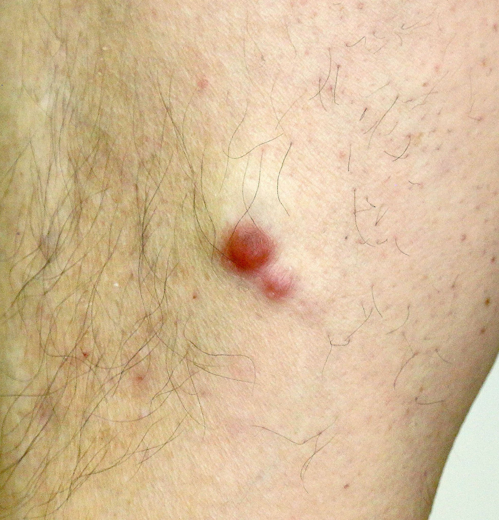 Рис. 2. Сгруппированные узелки на коже внутренней поверхности голени.