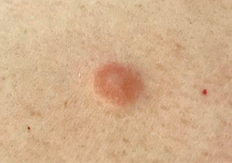 Пациентка К., 58 лет, жительница Свердловской области, обратилась в консультативно-поликлиническое отделение Государственного бюджетного учреждения Свердловской области «Уральский научно-исследовательский институт дерматовенерологии и иммунопатологии» с жалобами на многочисленные болезненные высыпания на коже лица, туловища и конечностей. Впервые заметила умеренно болезненные плотные новообразования на коже внутренних поверхностей плеч более 35 лет назад. Ранее в медицинские учреждения по поводу данного заболевания не обращалась, самостоятельно не лечилась. На приём обратилась для решения вопроса о возможности удаления нескольких новообразований в связи с усилением выраженности болевого синдрома.