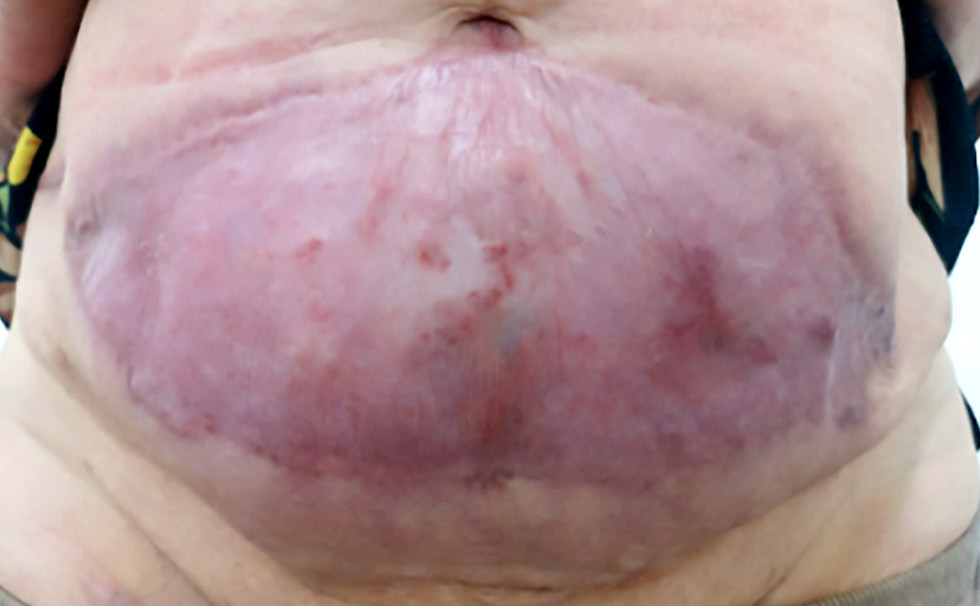 Рис. 4. Тот же пациент. Клиническая картина после проведённого лечения: отмечается полное рубцевание язвы в области живота. / Fig. 4. The same patient. Clinical image after the conducted treatment: complete scarring of the ulcer.