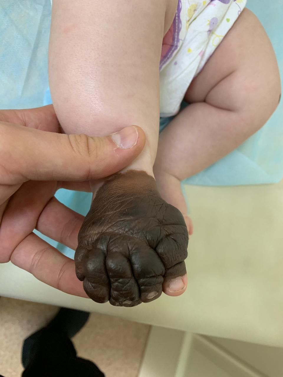 Fig. 1. Patient A., 3 months. Congenital giant nevus of the skin of the foot.