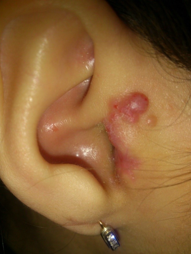 Fig. 3. Patient A., 27 years. Angiolymphoid hyperplasia with eosinophilia in the ear area.