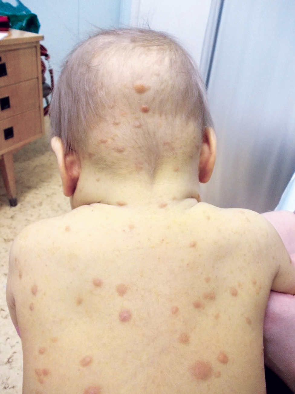 Fig. 5. Patient D., 1 year. Mastocytomas.