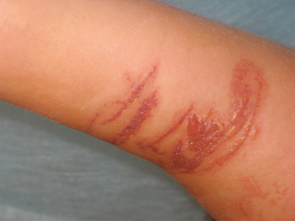 Fig. 8. Patient R., 11 years. Simple contact dermatitis (contact with jellyfish).