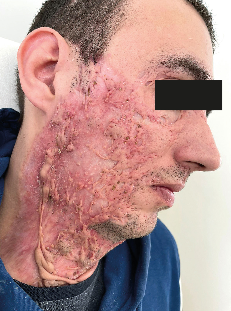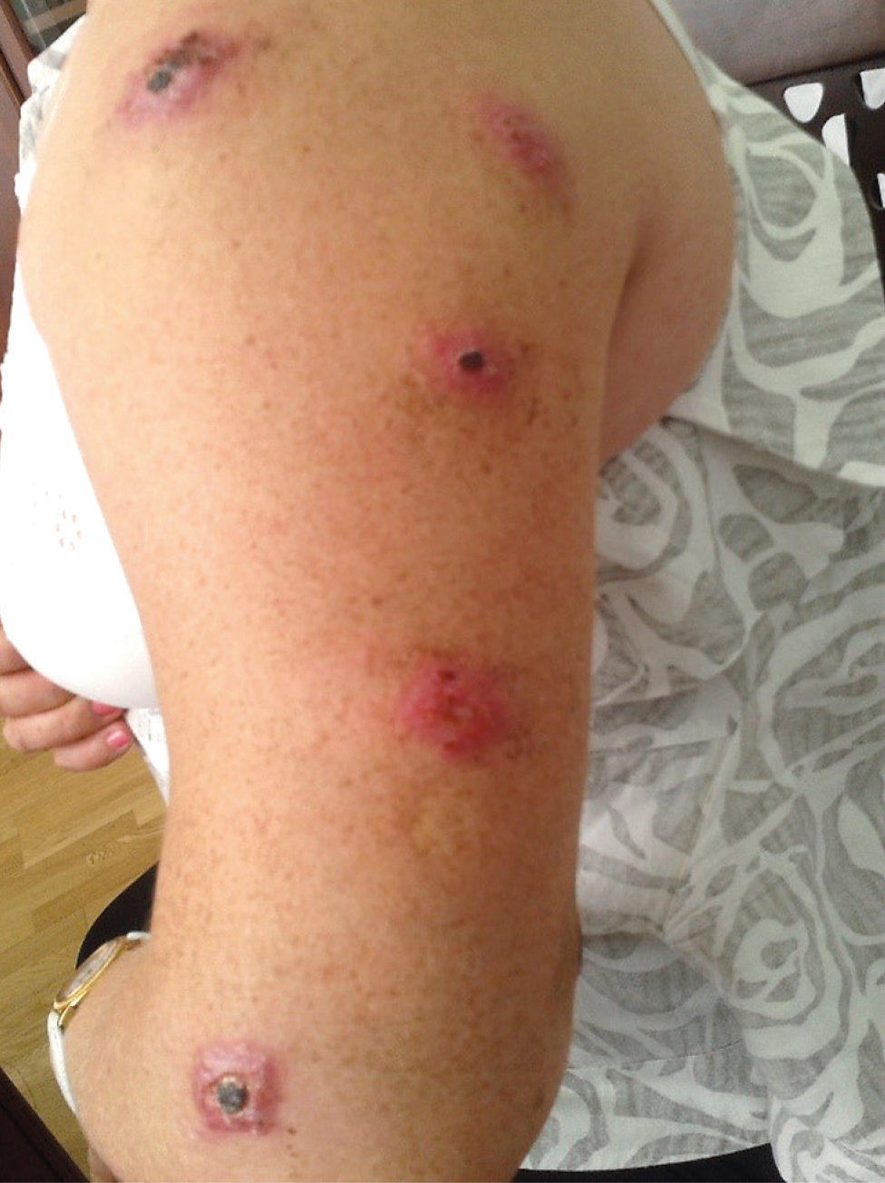 Fig. 9. Patient M., 28 years. Complication after fulminant acne.
