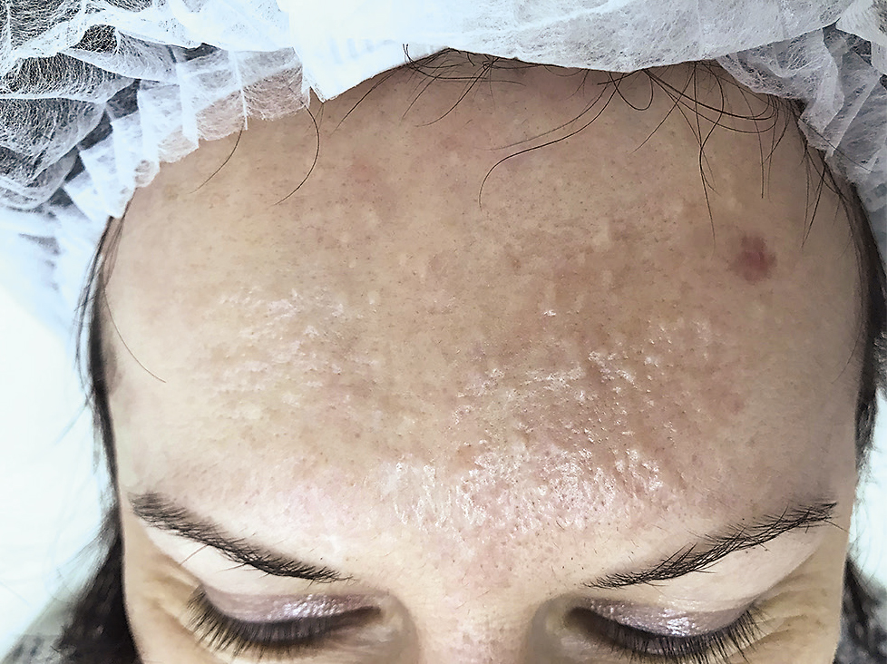 Fig. 13. Patient M., 35 years. Multiple osteomas of the forehead skin.