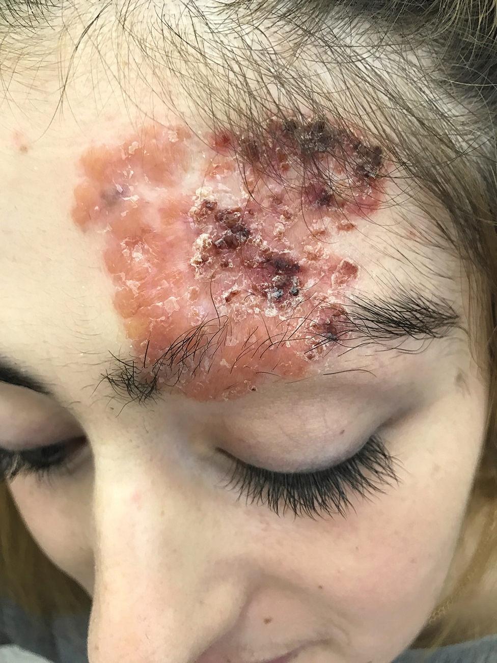 Fig. 14. Patient M., 26 years. Sarcoidosis of the forehead skin.