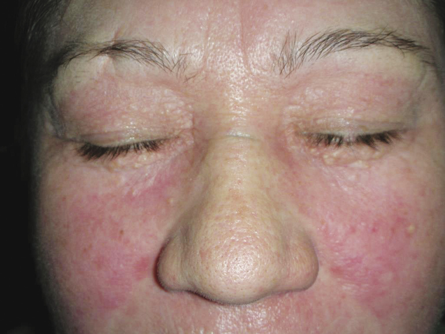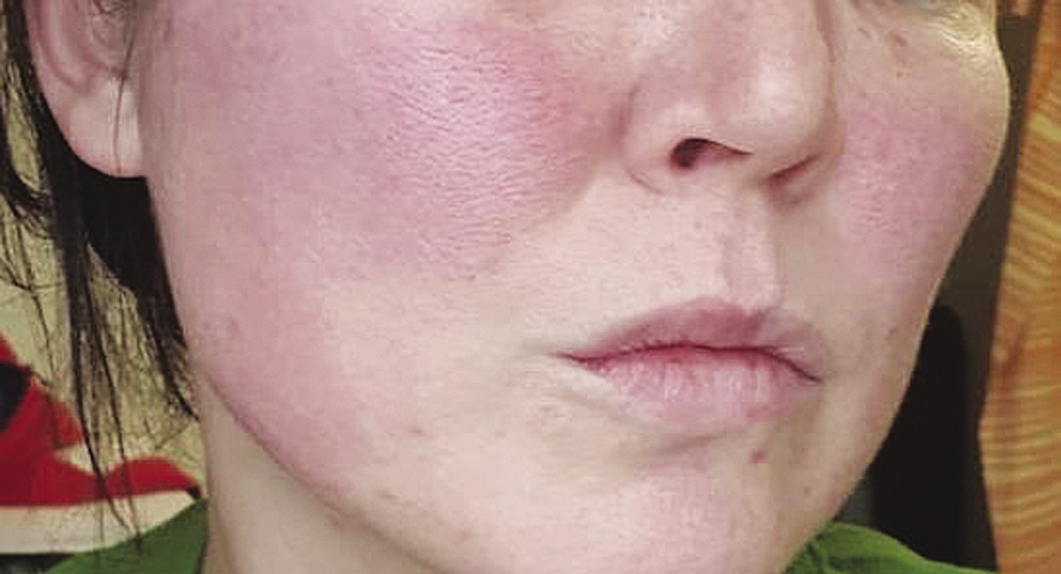 Рис. 2. Эритема лица у пациентки в возрасте 63 лет с COVID-19.