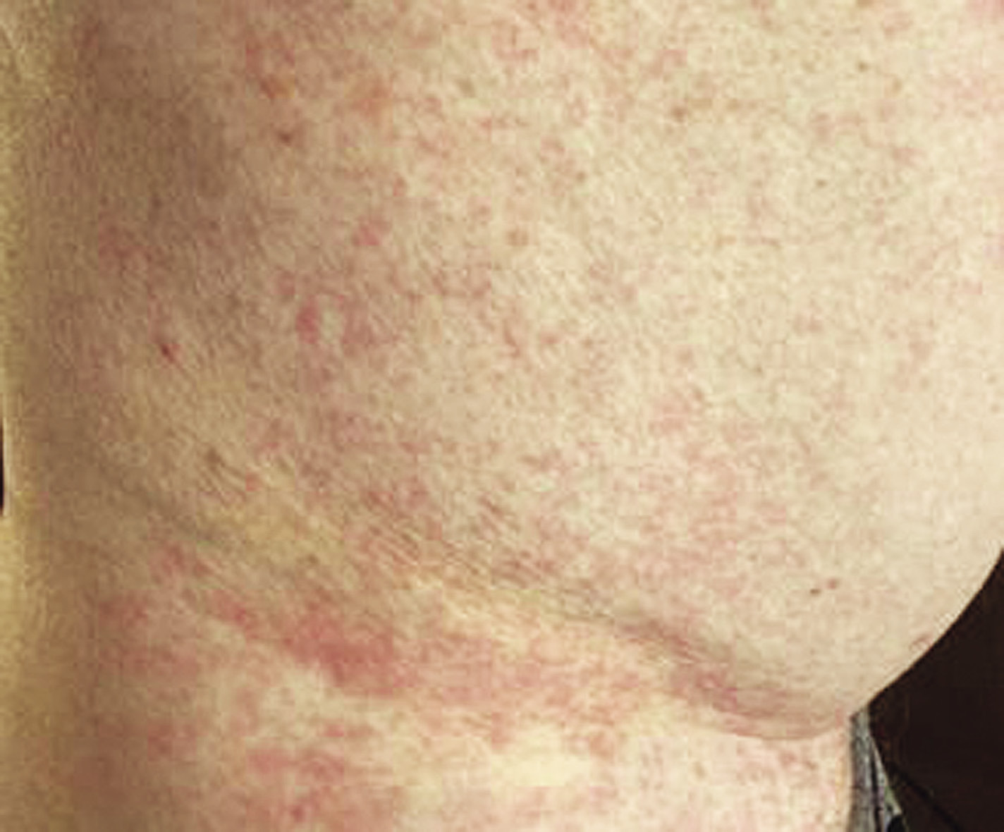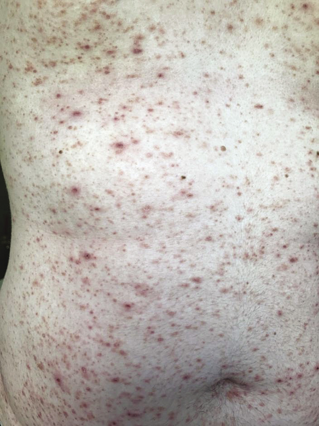 Рис. 3. Распространённая папулёзная сыпь на туловище у паци- ента в возрасте 59 лет с COVID.