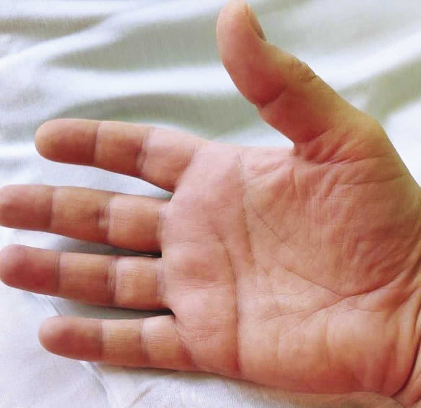 Рис. 13. Эритема ладоней у пациента в возрасте 40 лет с COVID-19.