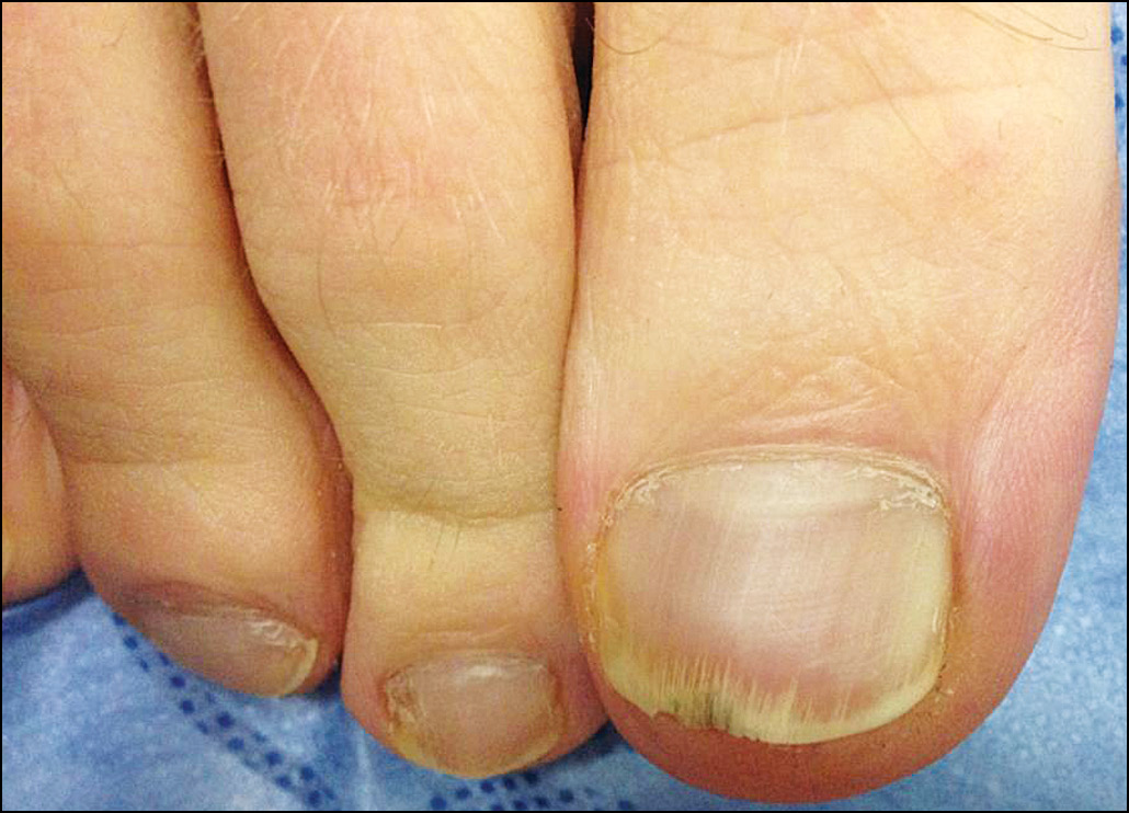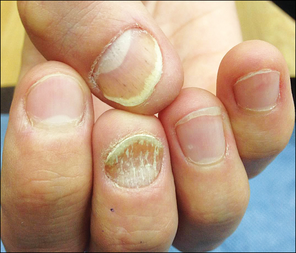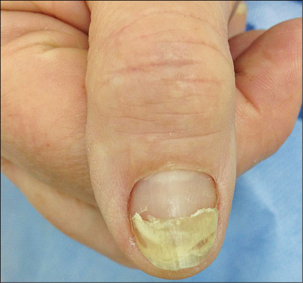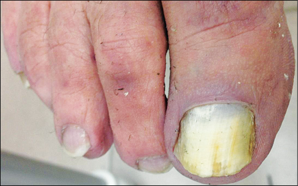 Рис. 7. Больной А., 46 лет. Белый поверхностный онихомикоз.