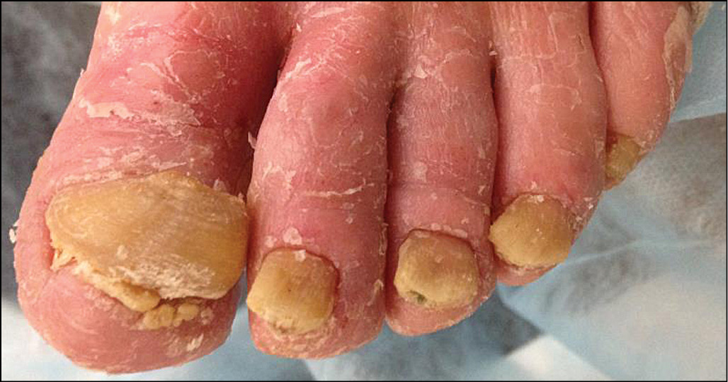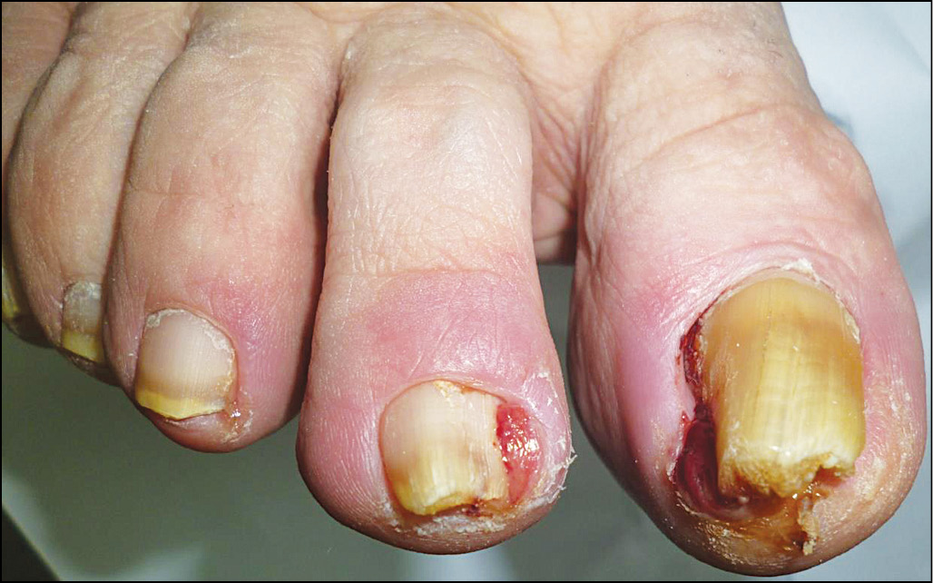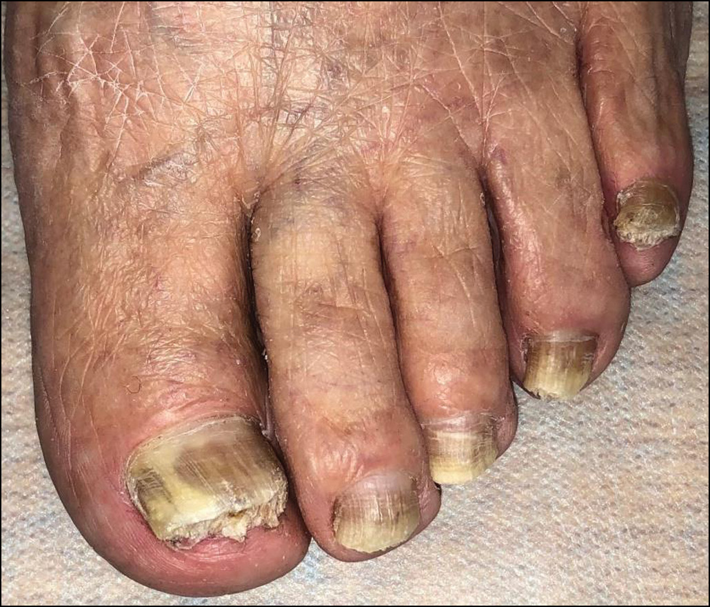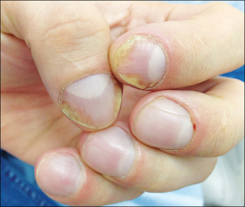 Рис. 7. Больной А., 46 лет. Белый поверхностный онихомикоз.
