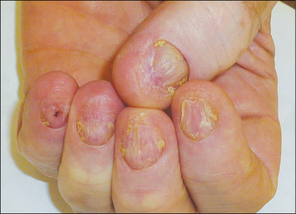 Рис. 11. Больной В., 51 год. Красный плоский лишай ногтей.