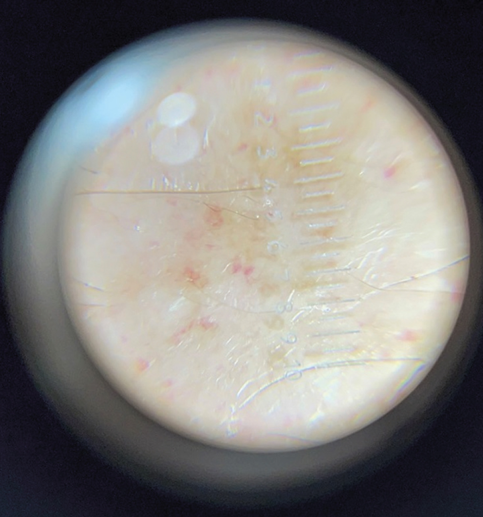 Fig. 4. Dermatoscopy of rash lesions 1 month after a single session of exposure to intense pulsed light.