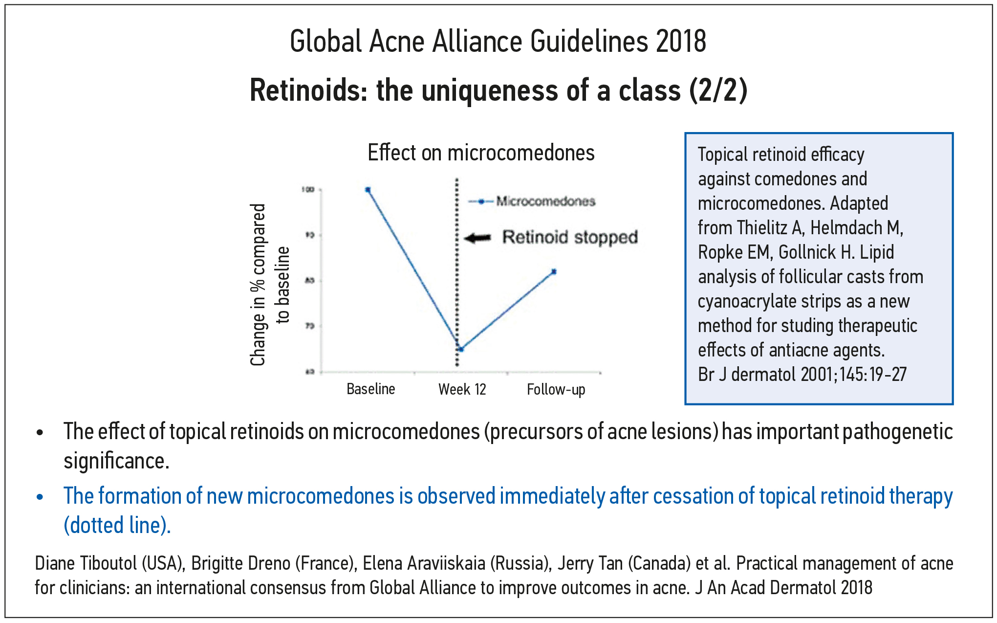 - Thiboutot D, Dreno B, Araviiskaia E, et al. Practical management of acne for clinicians: an international consensus from Global Alliance to improve outcomes in acne. J Am Acad Dermatol. 2018;78(2, Suppl 1):S1-S23.e1. EDN: XXFYMP doi: 10.1016/j.jaad.2017.09.078