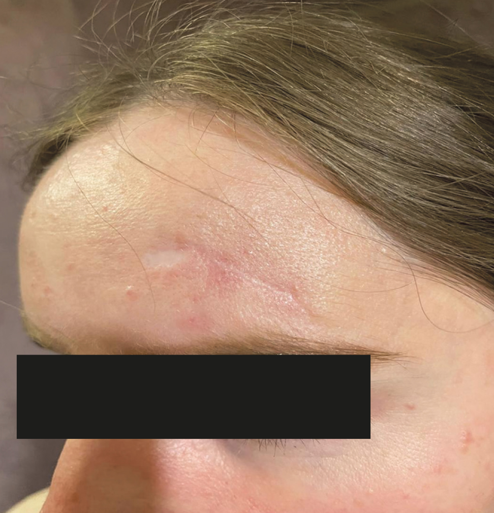 Fig. 3. Postoperative scar on the forehead skin as a result of tumour excision.