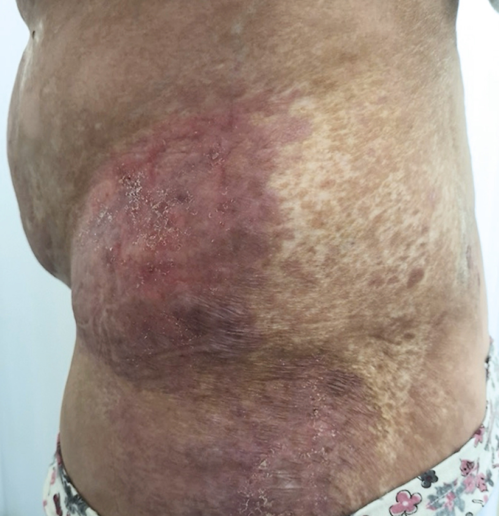 Fig. 3. Multiple foci on the skin of the left lateral surface of the trunk.