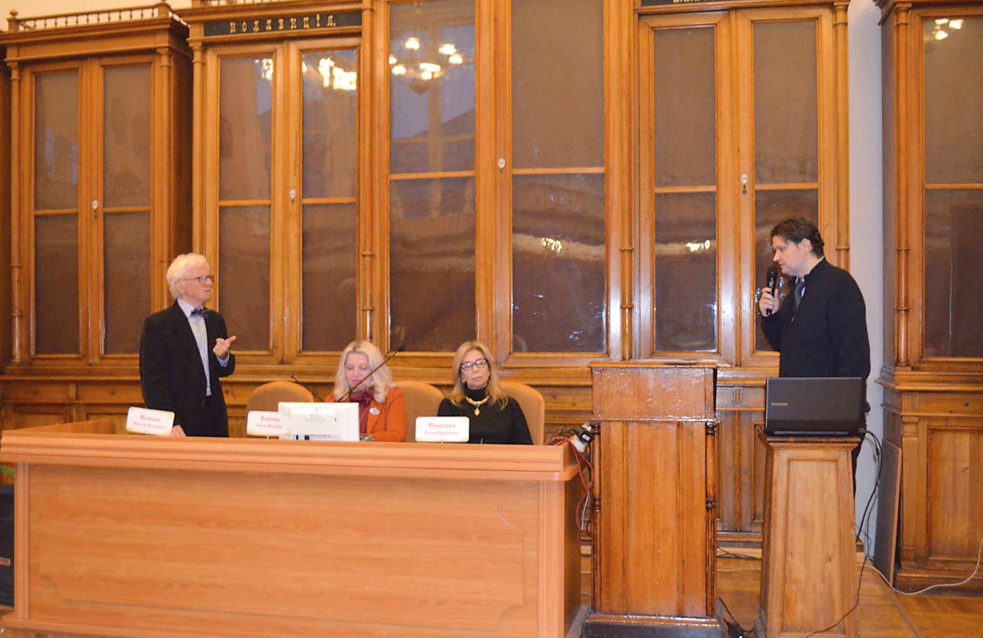 В Президиуме конференции: чл.-корр. РАН профессор О.Ю. Олисова, профессор Е.С. Снарская, доцент кафедры дерматовенерологии и косметологии ФГБУ ДПО ЦГМА Управления делами Президента РФ канд. мед. наук А.Б. Яковлев.