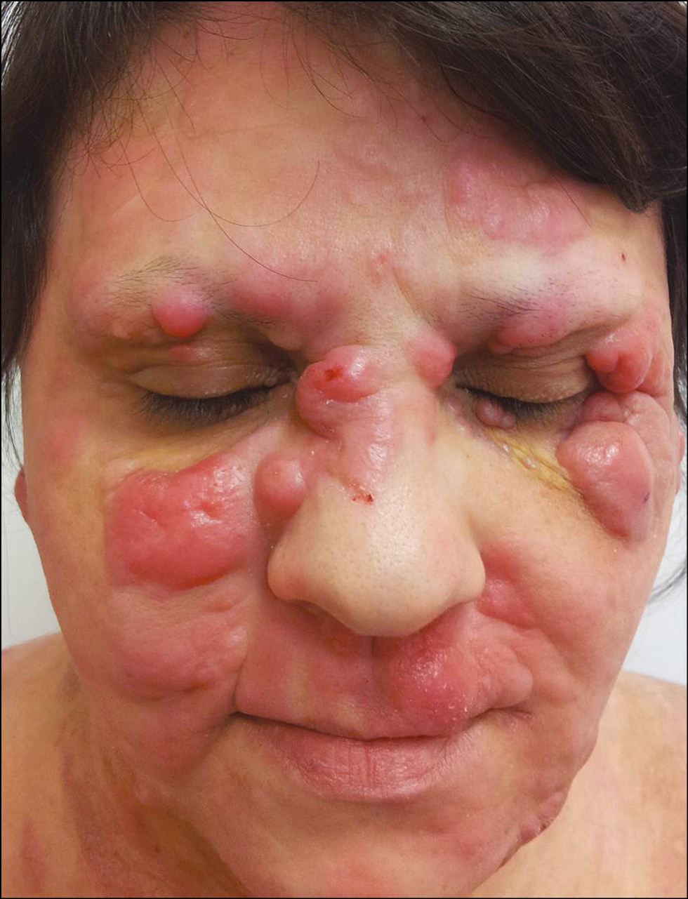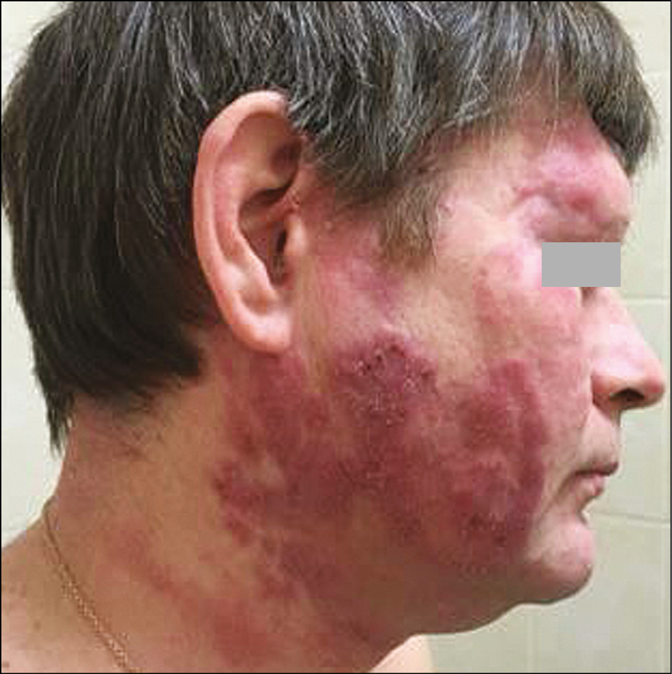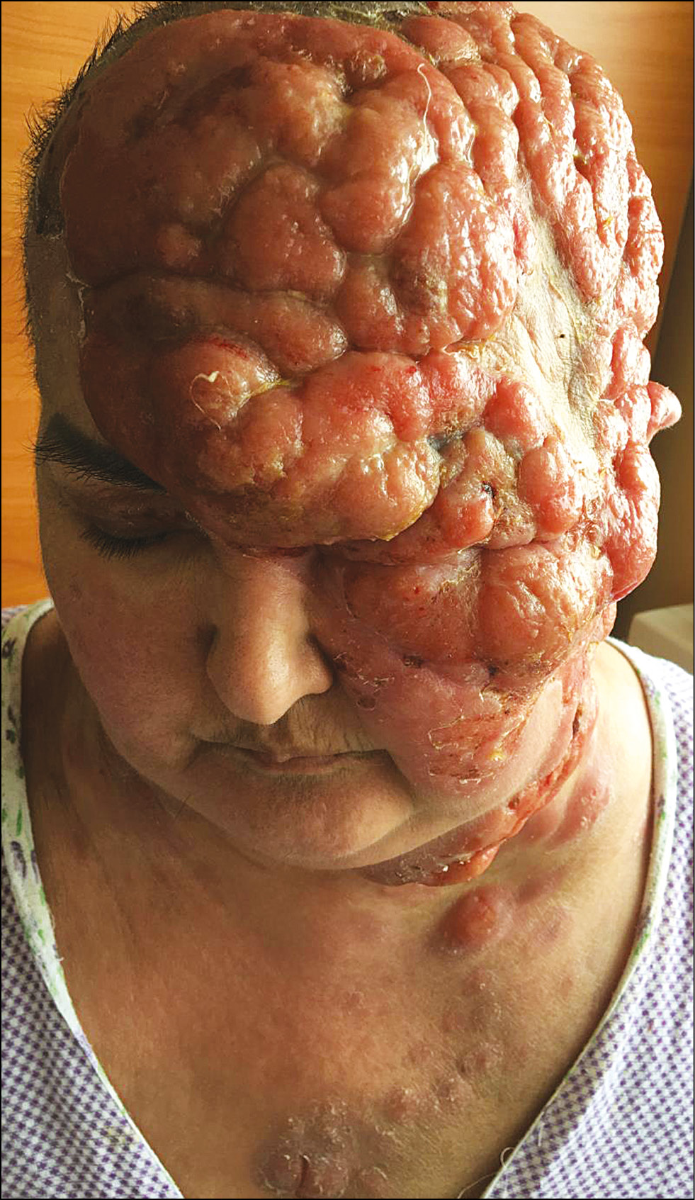 Рис. 10. Опухолевая стадия грибовидного микоза: узлы на лице. / Fig. 10. Tumor stage of fungal mycosis: nodes on the face.