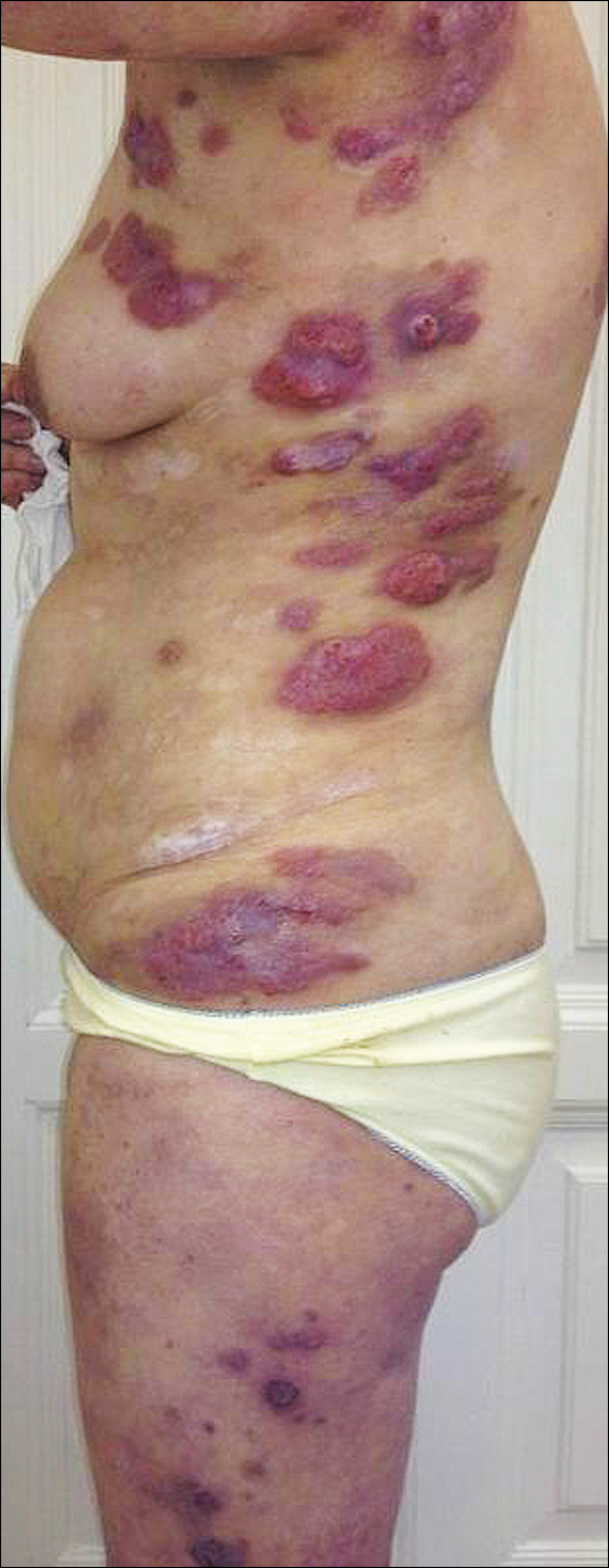 Рис. 9. Опухолевая стадия грибовидного микоза: множественные узлы. / Fig. 9. Tumor stage of fungal mycosis: multiple nodes.