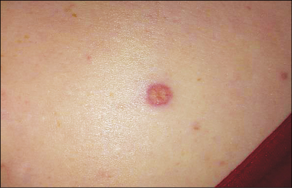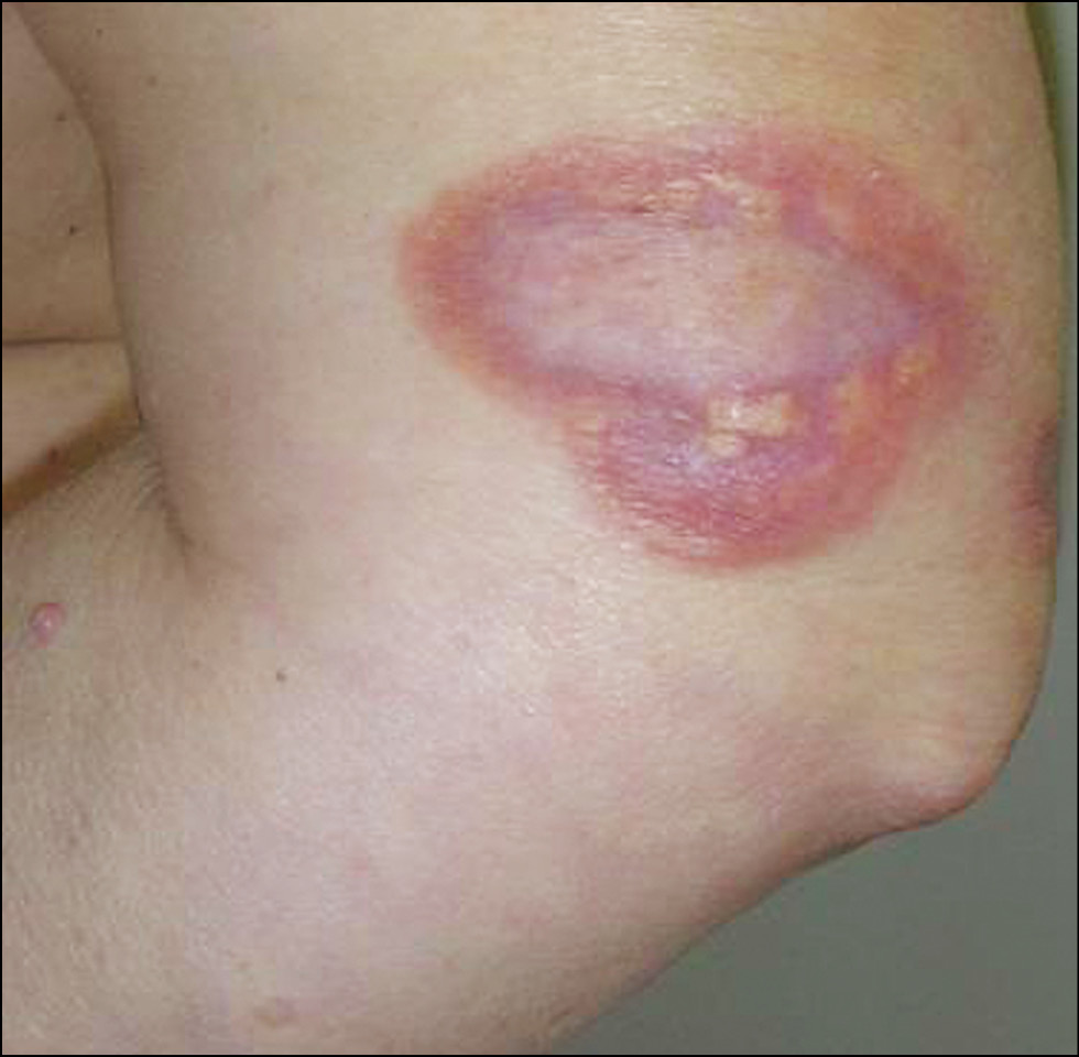 Рис. 28. Больная М., 45 лет. Атипичный вариант саркоидоза: аннулярный саркоид Бека. / Fig. 28. Patient M., 45 years old. Atypical variant of sarcoidosis: Beck’s annular sarcoid.
