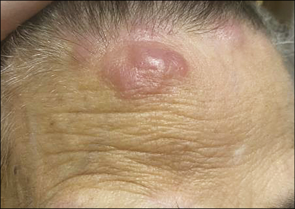 Рис. 4. Больная С., 75 лет. Доброкачественная лимфоплазия кожи. Причина не установлена. / Fig. 4. Patient S., 75 y.o. Cutaneous lymphoid hyperplasia. Unknown etiology.