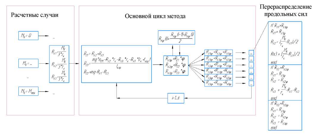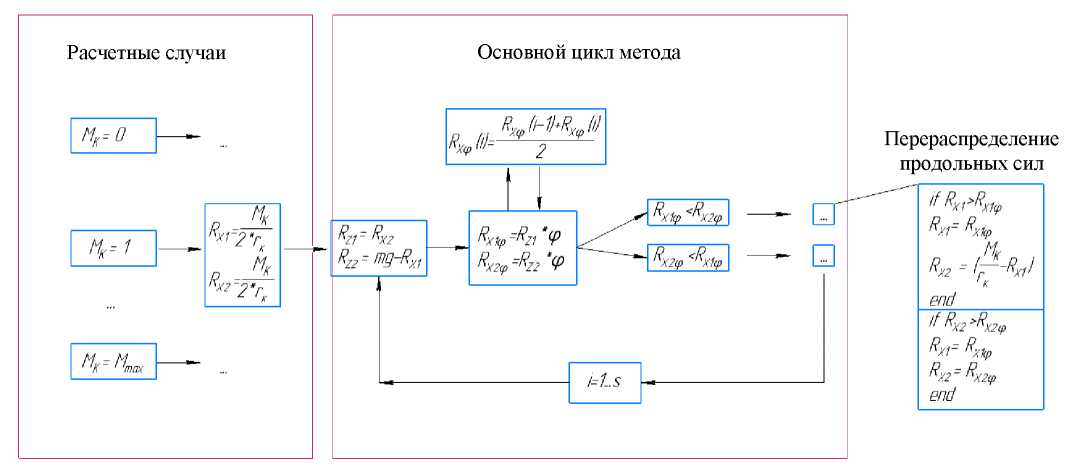 Рис. 4. Схемы алгоритма вычисления внешних сил, действующих на машину при случае А на этапе 2