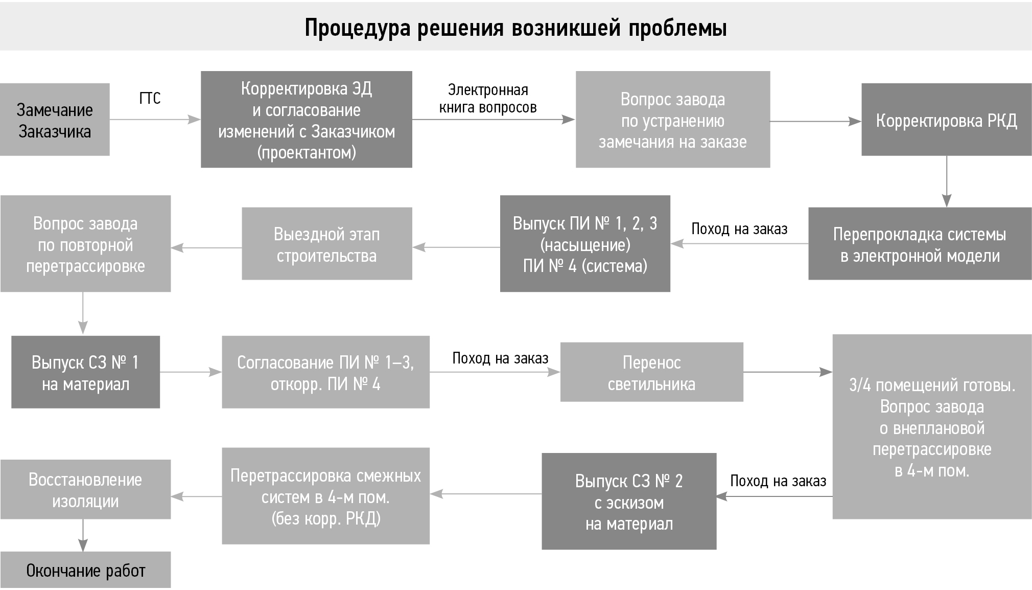 28.02 (ср.) ― 13.03 (ср.) | Перетрассировка смежных систем в помещении (строителями принято решение «выполнить без корректировки рабочей конструкторской документации») |