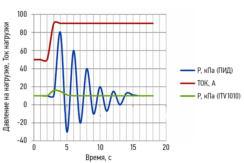 Рис. 7. Характеристики давления регулятора ITV на нагрузке.