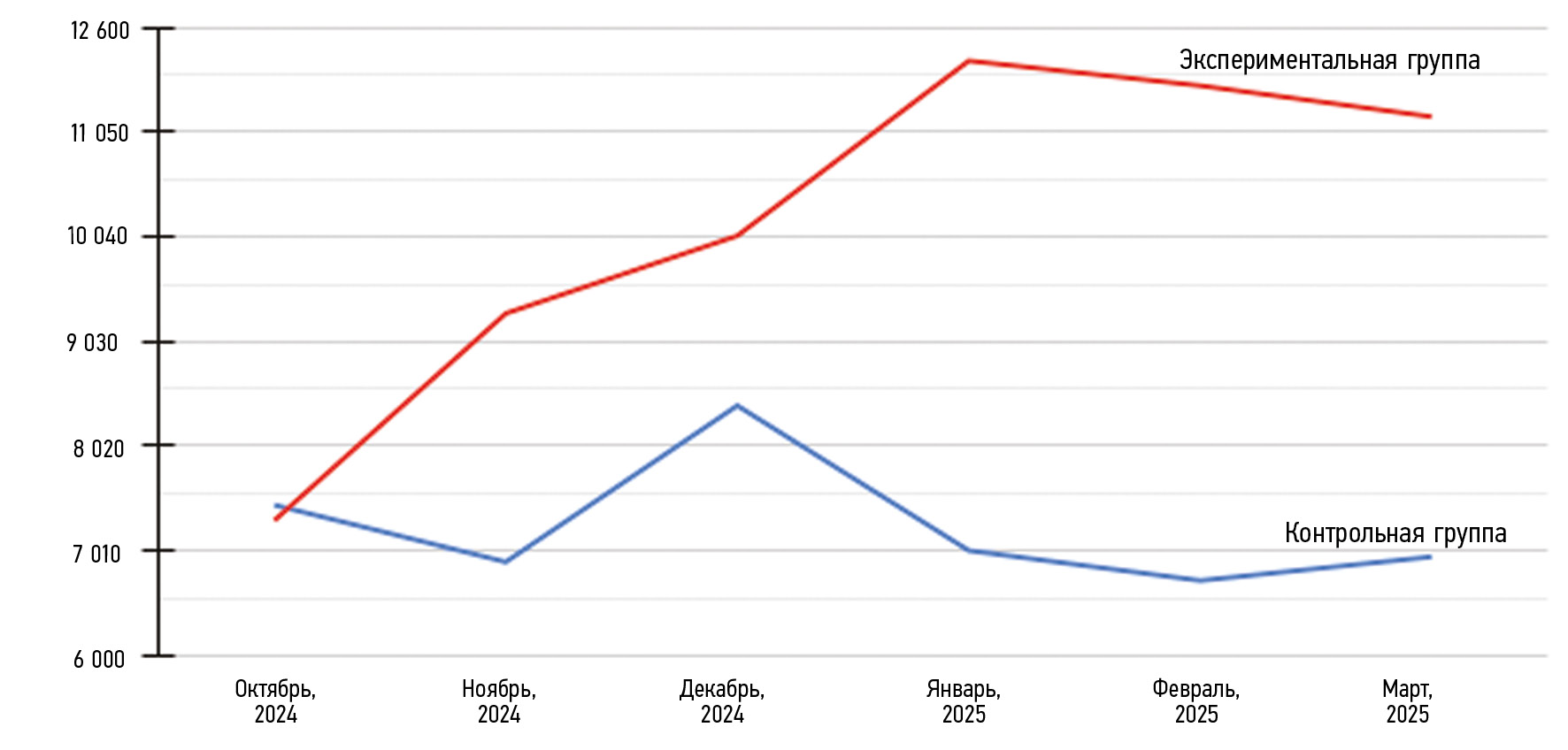 - Сравнительный анализ показал явные различия между группами по ключевым параметрам. Физическая активность: первая группа продемонстрировала рост показателей на 15–17 %, во второй группе изменения колебались, но среднее значение оставалось стабильным. Мотивация: субъективная оценка мотивации через анкетирование показала, что участники первой группы испытывали большую вовлеченность и положительное влияние поддержки, соревновательных элементов. Во второй группе эксперимент покинули два участника из-за отсутствия мотивации. Стабильность прогресса (рис. 1): данные мониторинга показали, что участники первой группы демонстрировали более устойчивый рост активности, тогда как во второй наблюдались колебания в тренировках.