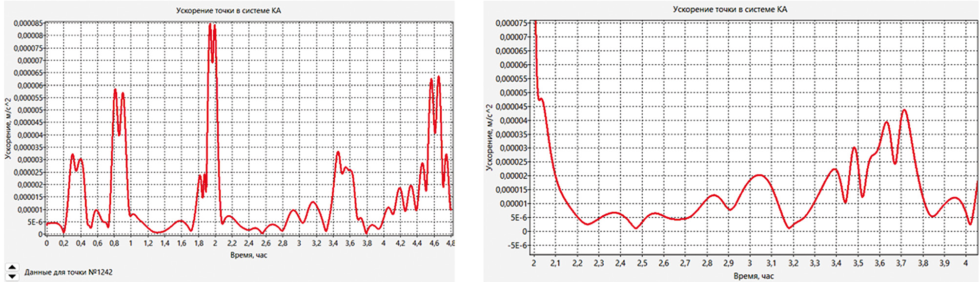 Результаты. В результате работы реализованного алгоритма были получены оценки изменения бортовых микроускорений для различных точек, составленных по STL-модели (рис. 1).